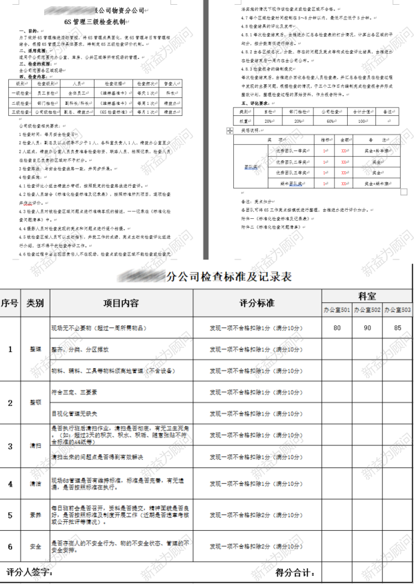 山西某化工材料公司事業部生產處路處長和新益為項目經理易老師帶領檢查小組對7月份驗收的第二拓展區6S管理開展情況進行了驗收,9個團隊均驗收合格。在驗收過程中,檢查人員對仍可提高的問題給出了意見和建議,如:物品的歸類擺放、會議室不要物清理、電控柜頂部灰塵清理等。