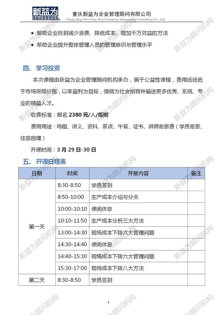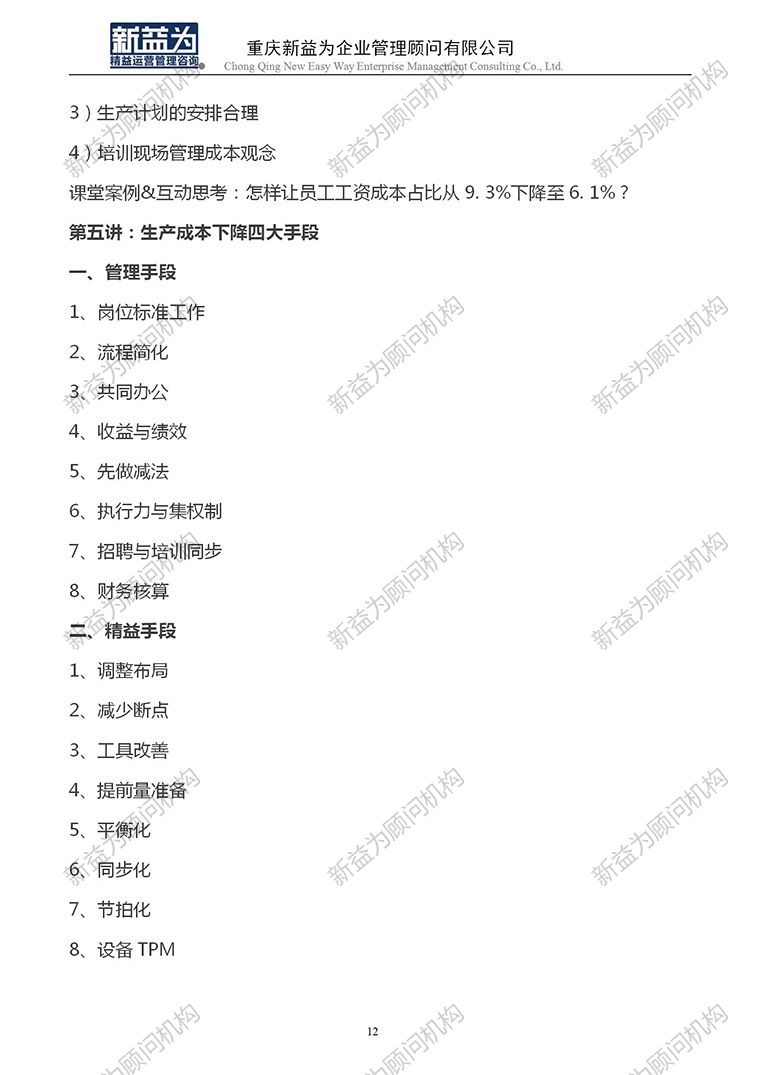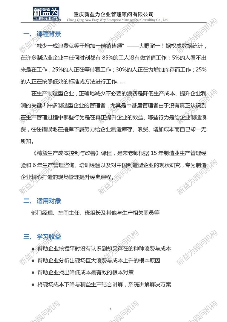 重慶2023.03 精益生產成本控制與改善訓練營