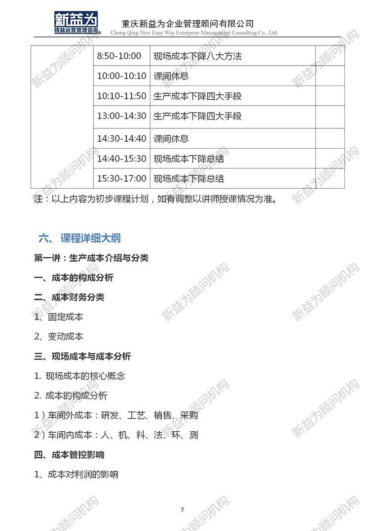 精益生產成本控制與改善訓練營