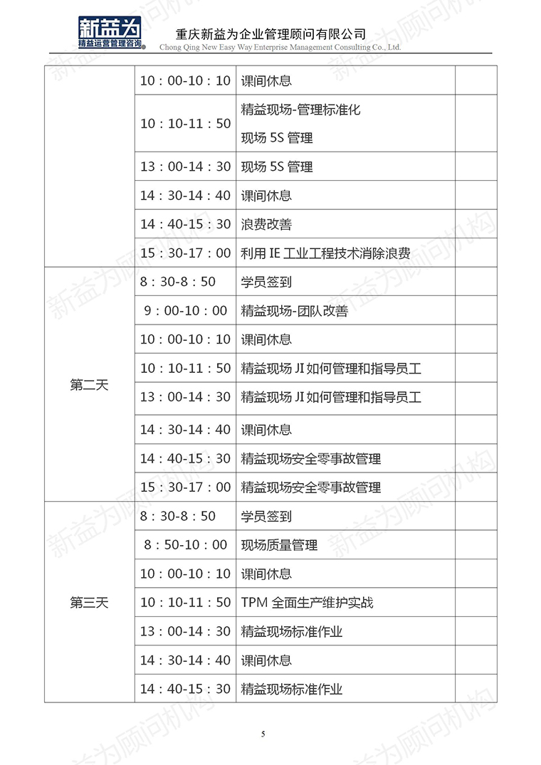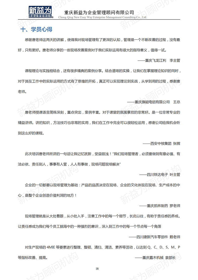 重慶2023.05 精益現(xiàn)場(chǎng)管理實(shí)踐訓(xùn)練營(yíng)